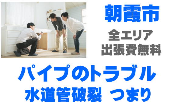 朝霞市でパイプの修理を行っています。水漏れ、つまり、水道管破裂、凍結、漏水などのお困りごとはご相談ください。