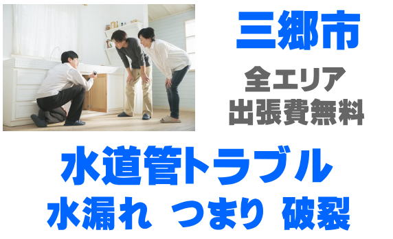 三郷市でパイプの修理を行っています。水漏れ、つまり、水道管破裂、凍結、漏水などのお困りごとはご相談ください。