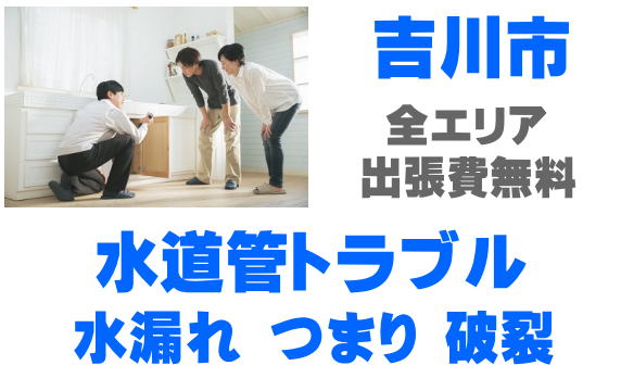 吉川市で水道管の水漏れ、パイプつまり、破裂、凍結、漏水などのトラブルはお任せください。